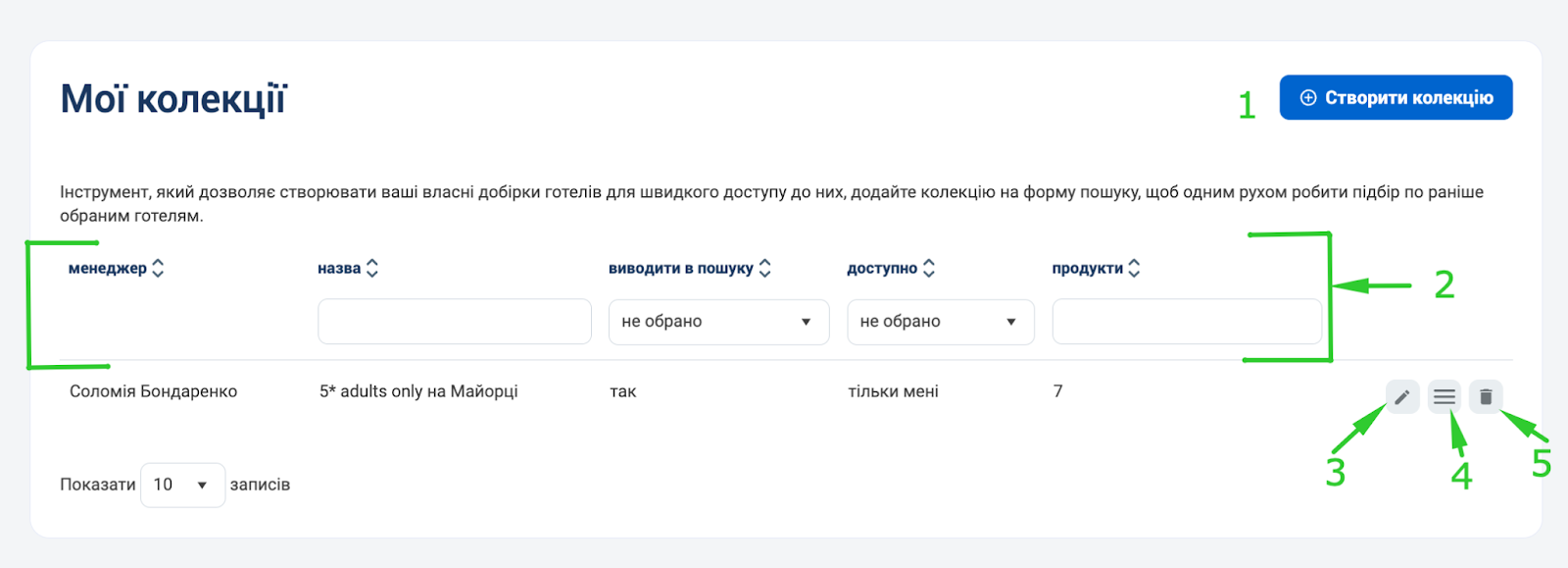 6. Поставте тут “пташку” і поле “Колекції” зʼявиться на головній сторінці пошуку Готелів вашого кабінету. Ось тут: